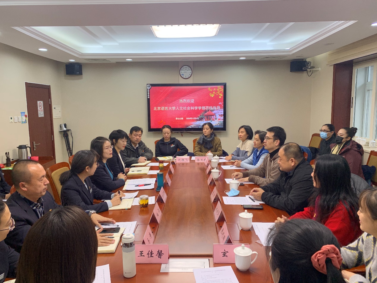 学部党委书记张阳向参会人员介绍了人文社会科学学部的历史沿革、基本情况和党建特色,学部党委近年来按照“一四一”党建工作理念,即一个核心、四个坚持和一个注重,有效推动学部党建工作“闭环”发展。通过实施“一部一项”为抓手的党建能力提升计划、“讲好中国故事”为特色的党建融合发展计划和以帮扶少数民族学生为重点的党建育人服务计划推动基层党支部建设,推进“党建铸魂”工程。最后,张阳书记着重介绍了学部党建工作的特色,即打造育人品牌、推动品牌发展;讲好中国故事、传播中国声音;抓好思想阵地、培养传播骨干。张阳书记还表示,学部与香山公园在红色文化共建和实践基地搭建等方面都可以开展进一步的交流与合作。双方领导发言之后,与会人员对接需求、集思广益、踊跃发言。学部党委副书记卜晨光提到,新文科建设亟需跨界、交叉和破壁。北京语言大学办学历史中带有鲜明的红色基因,而香山公园的发展亦具有显著特色,双方在党建创新、品牌共建和课题研究等方面,具有广阔的合作空间。