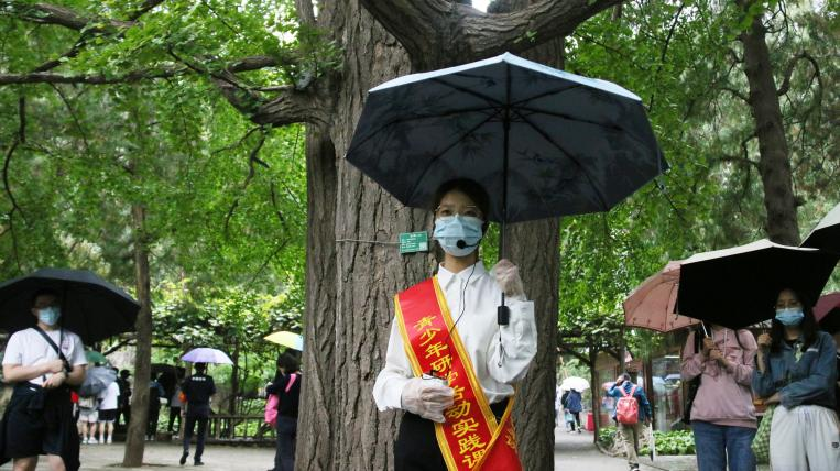 环绕在六角亭周围,我院派出的三名红色故事讲解志愿者向我们讲述了“进京赶考”、“嚼得菜根,百事可做”、“毛主席与徐肖冰、侯波夫妇合照”三个红色故事,让我们进一步体会到了毛主席戒骄戒躁、一心为民的工作准则以及简单朴素的生活作风和亲切平等的待人方式。