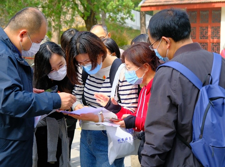 2021年10月,文学院党委与香山公园党委签署红色文化教育基地共建协议,结合双方需求开展师生志愿服务活动、党团支部共建、语言能力服务支持与实地调研等活动。在香山红叶节期间,学院本科生党支部派出红色故事讲解志愿者,学院团委组织青年学生参与门区值守志愿者服务。