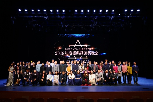 12月19日晚,人文社会科学学部举行了“人文之星”2018年度盛典暨颁奖晚会。北京语言大学副校长黄益方、研究生院常务副院长郭鹏、党委宣传部常务副部长展明锋、后勤服务集团党总支书记谢刚、应用外语学院院长陆薇、体育教学部主任王伟光、教务处副处长李晓波老师、学生处副处长武玉洲、校团委书记杨天乔、体育教学部副主任刘坤等作为颁奖嘉宾参加了盛典。