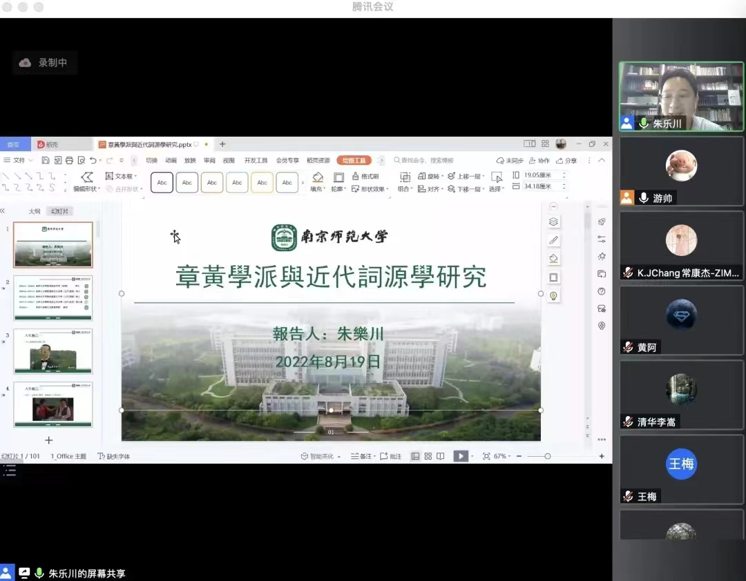② 2022年8月19日下午,北京语言大学文学院古代汉语教研室举办的古代典籍阅读学术沙龙系列讲座第七讲正式开讲,来自南京师范大学的朱乐川教授为我们带来“章黄学派与近代词源学研究”主题讲座,吸引众多学子。