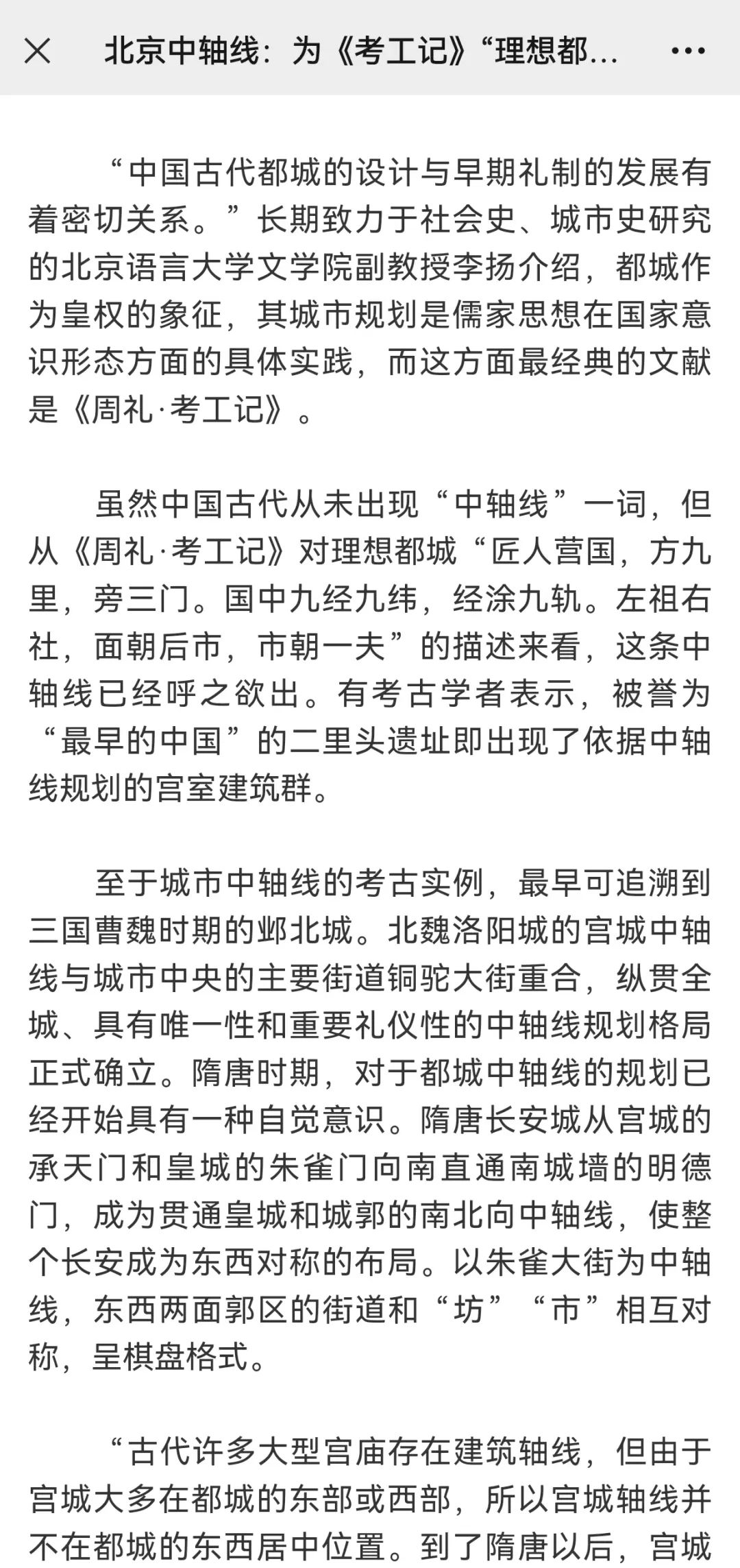 ②李扬副教授受邀采访的《北京中轴线:为<考工记>“理想都市”》于2023年4月10日发表于《文汇报》。