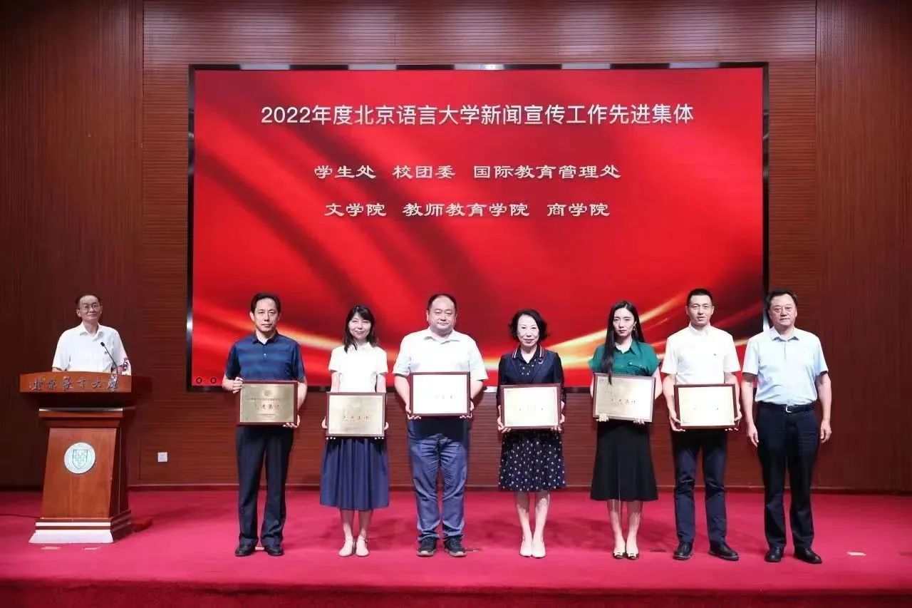①2023年7月11日,北京语言大学2023年宣传思想工作会暨新闻宣传工作表彰会在逸夫报告厅召开。文学院获得新闻宣传工作先进集体称号、十佳网站称号,玄铮老师获得新闻宣传工作先进个人、本科生王慧获得新媒体创新之星称号。