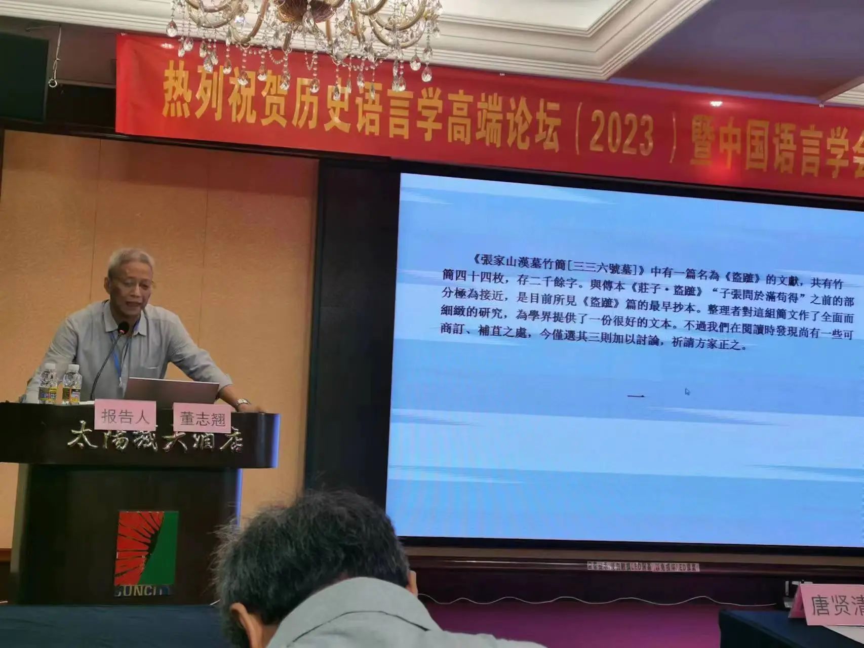 ④ 2023年12月8-10日,董志翘教授在海南省海口市出席由中国社会科学院语言研究所与海南师范大学联合主办的“历史语言学高端论坛(2023)暨中国语言学会历史语言学分会理事会”,并作大会主旨报告“张家山汉简《盗跖》篇校释三则”。