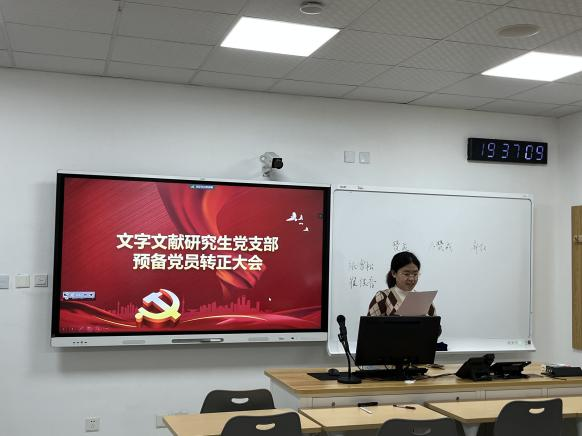 ④ 2023年12月8日,文学院文字文献研究生党支部在教二102召开党员转正大会,接收张雪松、崔佳音两位同志为中共正式党员。