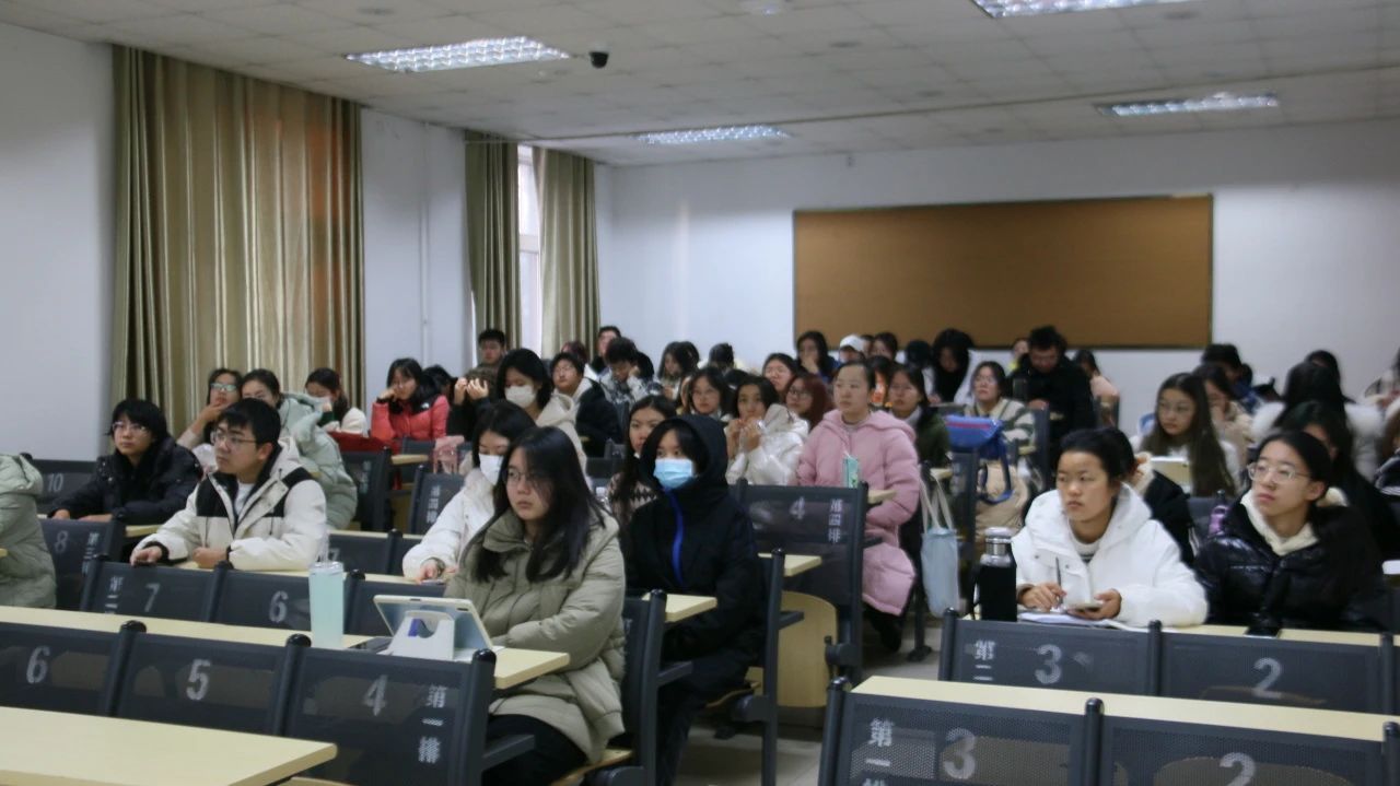 ① 2023年12月28-29日下午,文学院2022级、2021级本科生期末总结大会分别于教四103举行,辅导员万阳卓老师就本学期总结、期末考试、留学、升学、下学期安排等事项进行说明。