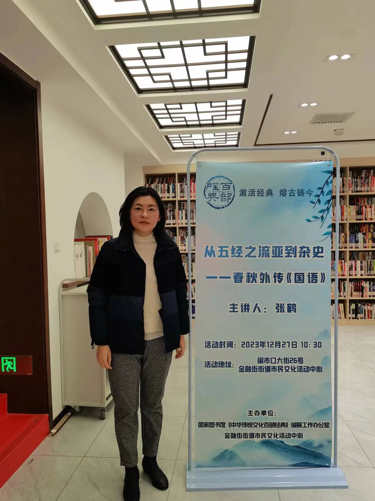 ② 2023年12月27日上午,张鹤副教授赴西城区金融街街道市民文化活动中心,作“从五经之流亚到杂史——被低估的史学著作《国语》”主题讲座。