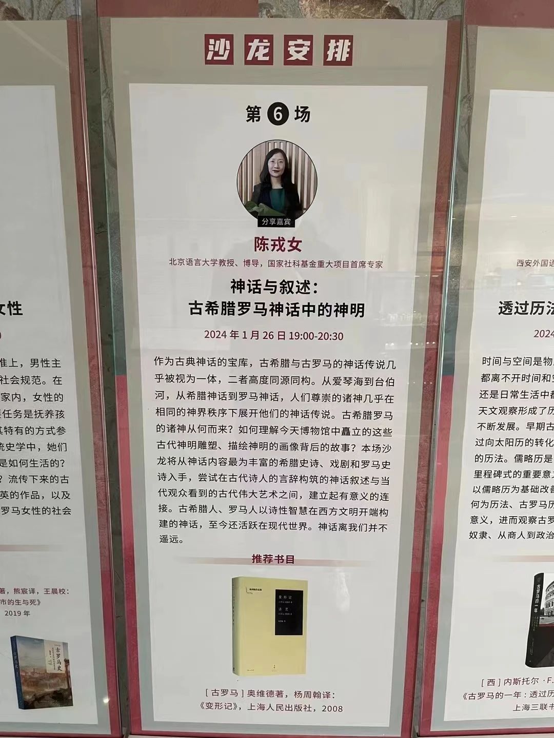 ②2024年1月26日,江苏吴文化博物馆“永恒古罗马”悦读沙龙第六场邀请陈戎女教授作“神话与叙述:古希腊罗马神话中的神明”的主题讲座。