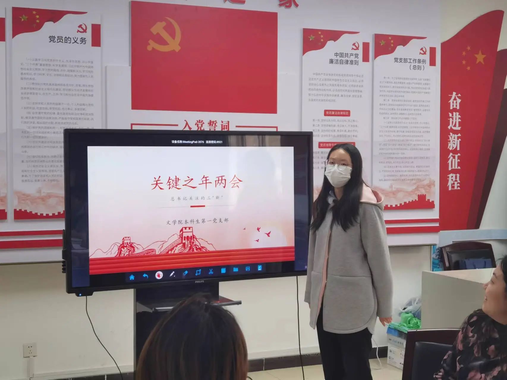 ① 2024年3月21日中午,文学院本科生第一党支部于教四213开展学习两会精神主题党日活动。