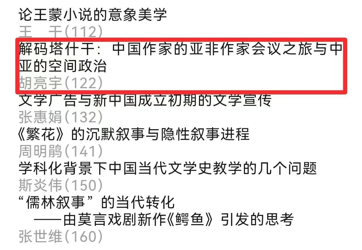 ③ 近日,《文学评论》2024年第2期刊发了胡亮宇老师的论文《解码塔什干:中国作家的亚非作家会议之旅与中亚的空间政治》。《文学评论》是是国内文学研究领域的顶级学术期刊,在业内享有重要学术声誉。