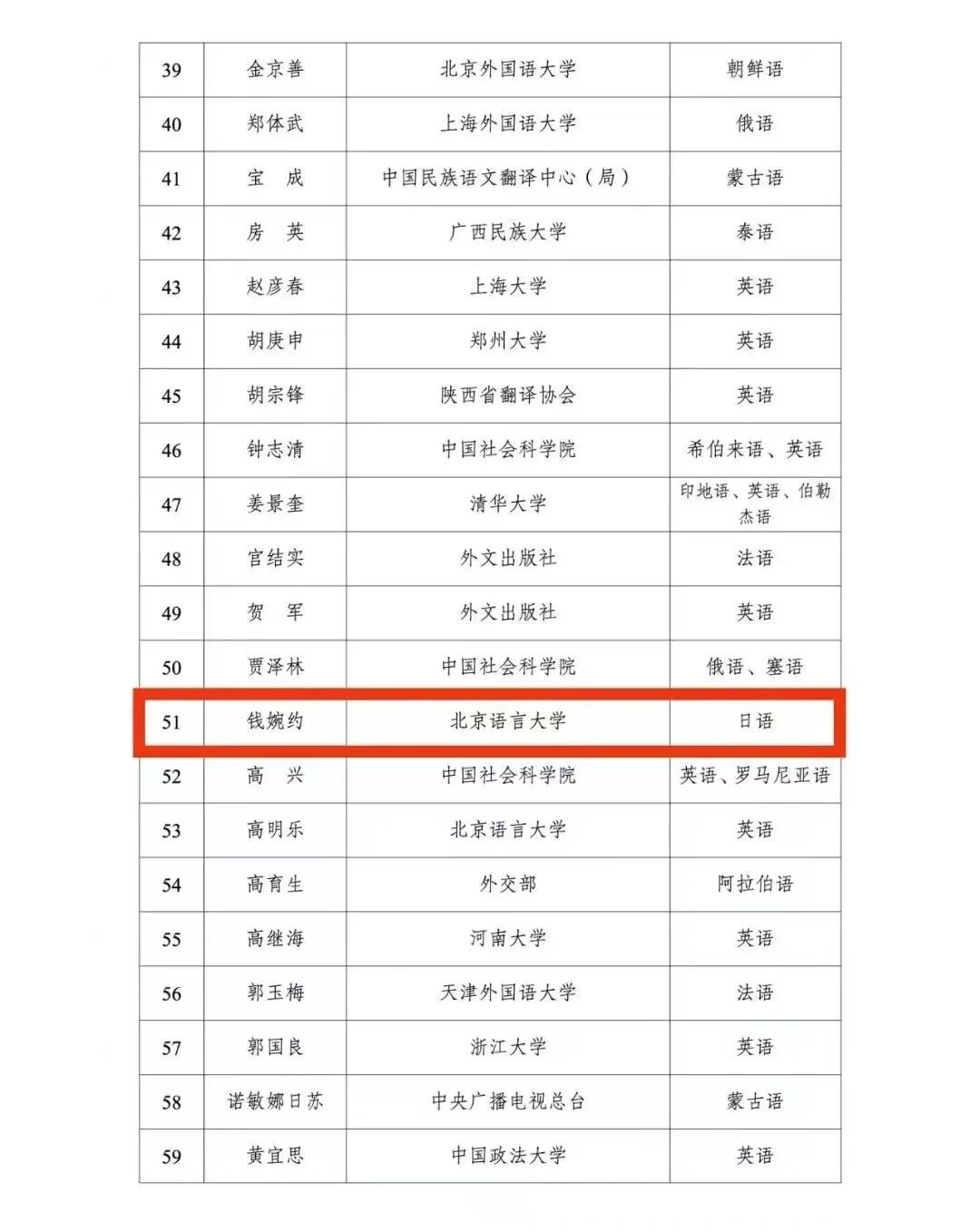 ① 近期,为表彰为我国翻译事业做出突出贡献的中外人士,更好服务党和国家工作大局,中国翻译协会开展了“翻译文化终身成就奖”“资深翻译家”及“翻译中国外籍翻译家”评选表彰活动。钱婉约教授荣获“资深翻译家”荣誉称号。