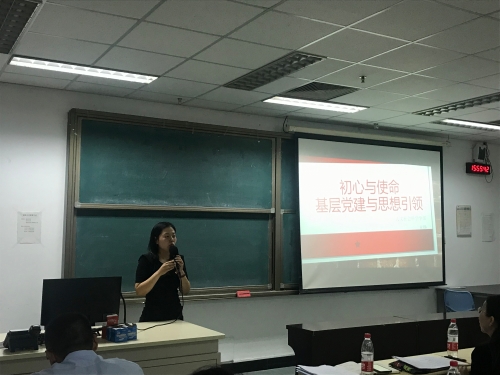 动员部署会结束后,学生办公室玄铮同志为在座的党员讲授了一堂以“初心与使命——基层党建与思想引领”为主题的党课,介绍了河南新乡党员先进群体典型的情况,并结合主题教育和自身工作经历谈了自己的体会,也拉开了学部主题教育“党员人人讲党课”的序幕。