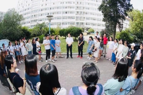 9月8日下午,人文社会科学学部学生在宿舍楼下开展班级素拓活动,以帮助同学们互相熟悉,尽快融入班级生活。刘利校长在学生处处长黄展、学部主任程娟的陪同下也走进新生素拓现场,用家乡方言的方式,幽默风趣地介绍了自己并与新生亲切交谈,亲身融入到学生班级活动中,并嘱托2019级新生好好享受大学四年时光,努力学习,积极进取。