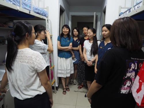 晚7点,人文社会科学学部主任程娟,学部党委书记张阳,学部副主任、汉语教育学院院长施家炜,学部副主任、新闻传播学院院长云国强、学部党委副书记卜晨光,各专业教师代表以及学部辅导员玄铮、李双依,新生班导前往宿舍看望各专业新生,并与新生亲切交谈。
