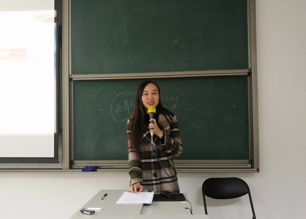 随后,胡静老师对党的十九大报告进行了进一步的解读。她为大家梳理了十九大报告的十三个部分并对报告主题进行了逐条讲解,将报告中的五个“新”展开分析。胡静老师认为,“新时代”是我国发展新的历史定位,时代是思想之母,实践是思想之源。她强调,中国共产党始终重视理论创新,而新思想的提出是历史的必然。新思想不仅为伟大的工程与事业提供了理论基础,也为国际社会提供了中国方案。胡静老师通过分析建国以来社会矛盾的变化,解释了“新矛盾”中“不平衡”、“不充分”的内涵。“新目标”描绘了建成富强民主文明和谐美丽的社会主义现代化强国的宏伟蓝图,对新时代中国特色社会主义发展作出战略安排,彰显了中国共产党的战略谋划和使命担当。胡静老师最后指出,“新征程”是对我们新一代人的要求,我们更应通过努力学习,为祖国建设做出贡献。