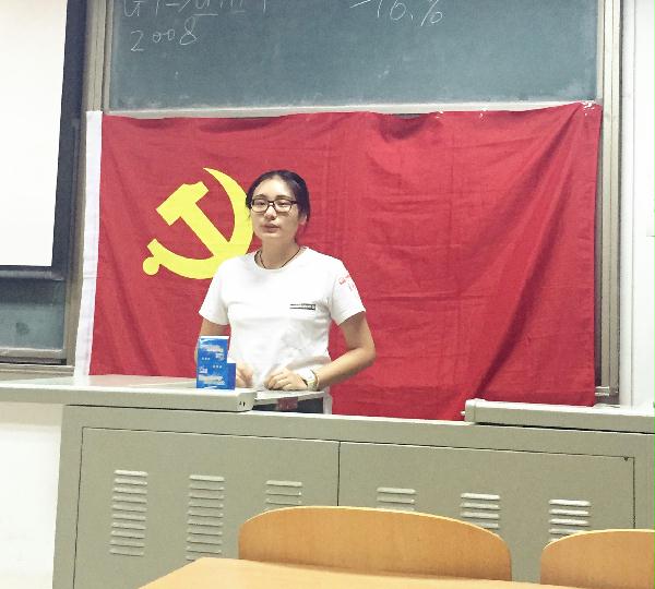 支部副书记刘梦悦同学强调,两学一做”学习教育具有重要意义,我们要深刻认识到“两学一做”不是一次性的活动,而是经常性、常态化的教育。她号召各位党员同志要按照习近平总书记对党员的要求,强化组织意识,时刻不忘自己应尽的义务和责任,相信组织、依靠组织、服从组织,自觉接受组织安排和纪律约束,自觉维护党的团结统一。作为学生党员,她认为同学们应该从自身做起,在日常学习生活中发挥榜样先锋作用,做讲政治、有信念,讲规矩、有纪律,讲道德、有品行,讲奉献、有作为的合格党员。