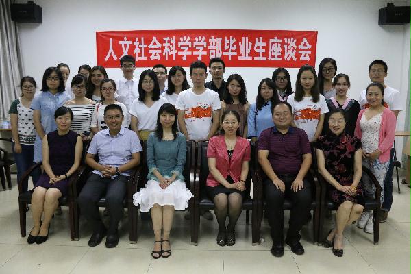 6月28日下午,人文社会科学学部在教四楼213会议室举办2016届毕业生座谈会。学部党委书记程娟老师、党委副书记张阳老师、汉语教育学院院长施家炜老师、刘雪春老师、国际关系学院金威老师、新闻传播学院院长云国强老师、张海华老师、教务办公室主任林建萍老师、学生工作办公室主任孙迎春老师、马铖老师、李越老师同学部2016届本科、硕士、博士毕业生代表三十多名同学进行了座谈。