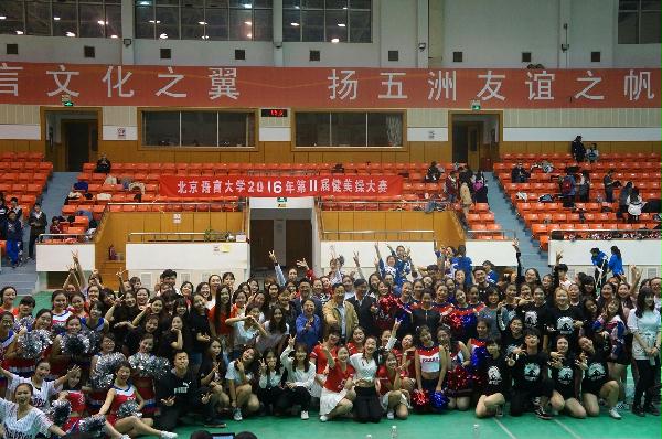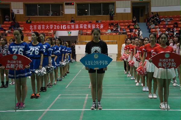 4月12日晚7:00,北京语言大学第十一届健美操比赛于逸夫体育馆成功举办。本次比赛共有街舞、花球和solo三种形式。以院系为代表的队伍共有14支,另有13个solo。人文社会科学学部共有两支队伍及两个solo参赛,solo分别由高鹏博和梁宇表演。整场比赛中,人文代表队成员的表现都十分精彩,“韶风”队勇夺冠军。