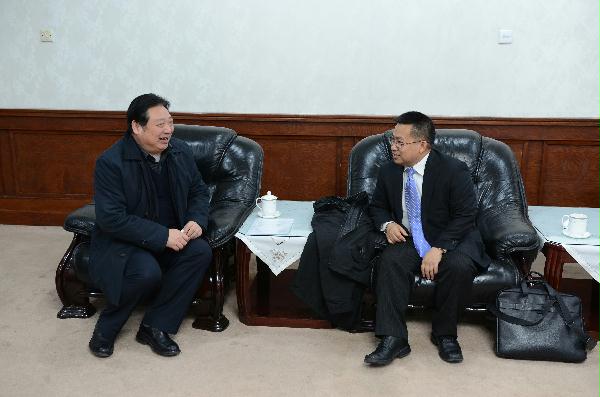 李宇明书记在讲座前与阮宗泽教授亲切交流