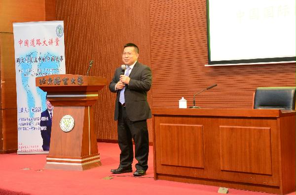 12月18日下午,北京语言大学逸夫报告厅里笑声不断,由人文社会科学学部政治学院和国际关系学院主办的“中国道路大讲堂”继续开讲,本场嘉宾为中国国际问题研究院常务副院长、《国际问题研究》主编、前中国驻美国使馆公使衔参赞阮宗泽。他以“跨文化交流中的中国故事”为题,为大家讲述了中国与世界各国互动的故事,在轻松、幽默的气氛中,诠释中国的成功密码。