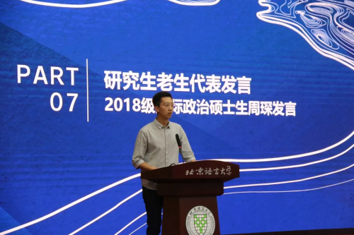人文研究生老生代表2018级国际政治专业研究生周琛同学发言