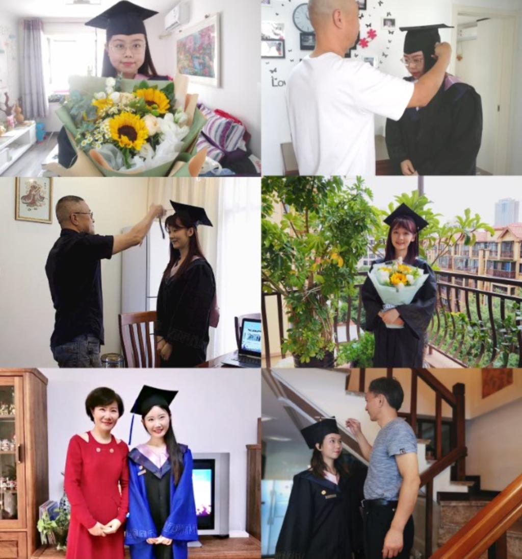 身着学部寄送的学位服,人文毕业生相聚“云端”。毕业生家长也受邀一同参与此次典礼,并在学位授予仪式中为孩子拨穗正冠。学位帽上的流苏从右边换到左边,代表一个阶段的结束,也寓意新征程的开始。在疫情期间这样一个特殊的毕业季,虽然没能接受校长拨穗,但是由家长完成的拨穗仪式也让毕业生收获了感动与力量。人文学子在满满的仪式感中留下了珍贵的毕业印记,感受到了来自学部的浓浓人文关怀。