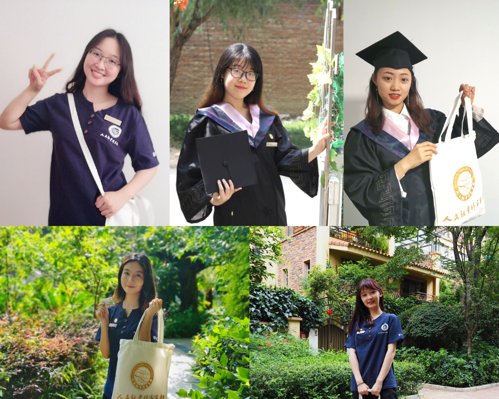 图:人文学子穿学位服/纪念衫所摄毕业照