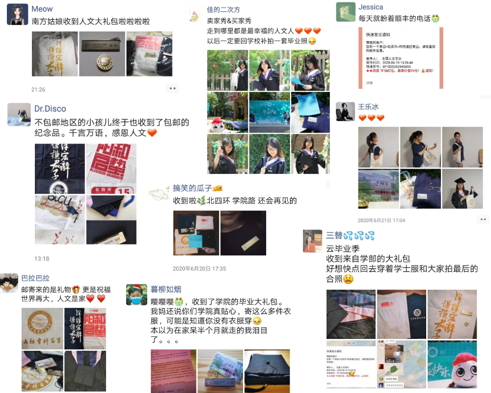 图:人文学子收到纪念品包裹(朋友圈截图)