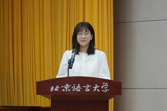 本科生老生代表2018级汉语国际教育专业本科生刘佳雪为大家送上了三个祝福:祝福大家有爱亲密,感受人文的温暖团结、充满活力,体会人格的舒展与生命的力量;祝福新生学有所获,广泛学习、深入探讨,发现兴趣、乐此不疲。祝福大家心有所向,立鸿鹄之志,以人文为港口扬帆起航。