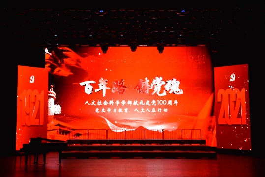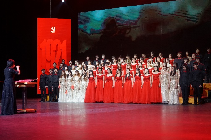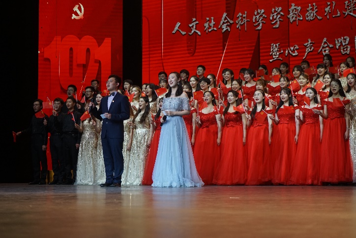 2021年6月25日晚19:00,“颂百年征程 谱时代乐章”人文社会科学学部献礼建党100周年文艺晚会暨心声合唱团首演于梧桐会堂顺利举行。
