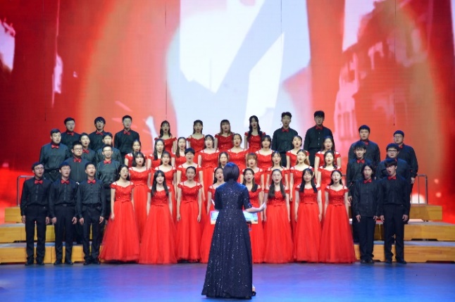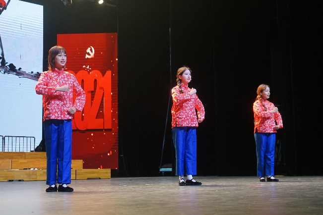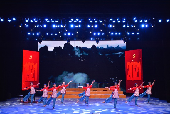 初心不忘来时路,矢志奋斗新征程。在晚会的末尾,演出人员挥动手中的党旗,齐声高唱《没有共产党就没有新中国》。中国共产党革命先辈们的振臂高呼引导了迷雾中的人民,党员战士的热血浸润了我们脚下的土地,而后一路栉风沐雨、穿过历史的风霜荆棘,才有了中华人民共和国的今天。