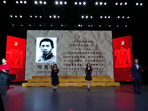 由北京语言大学人文社会科学学部融媒体(创新创业)中心制作的《百年对话 时代青年》视频节目打开了晚会下篇的大幕。从战死沙场的红军战士,到奔赴前线的抗疫志士,在人文社会科学学部青年党员的诵读声中,我们体会到先辈们在家书中体现的舍生忘死、坚贞不屈。