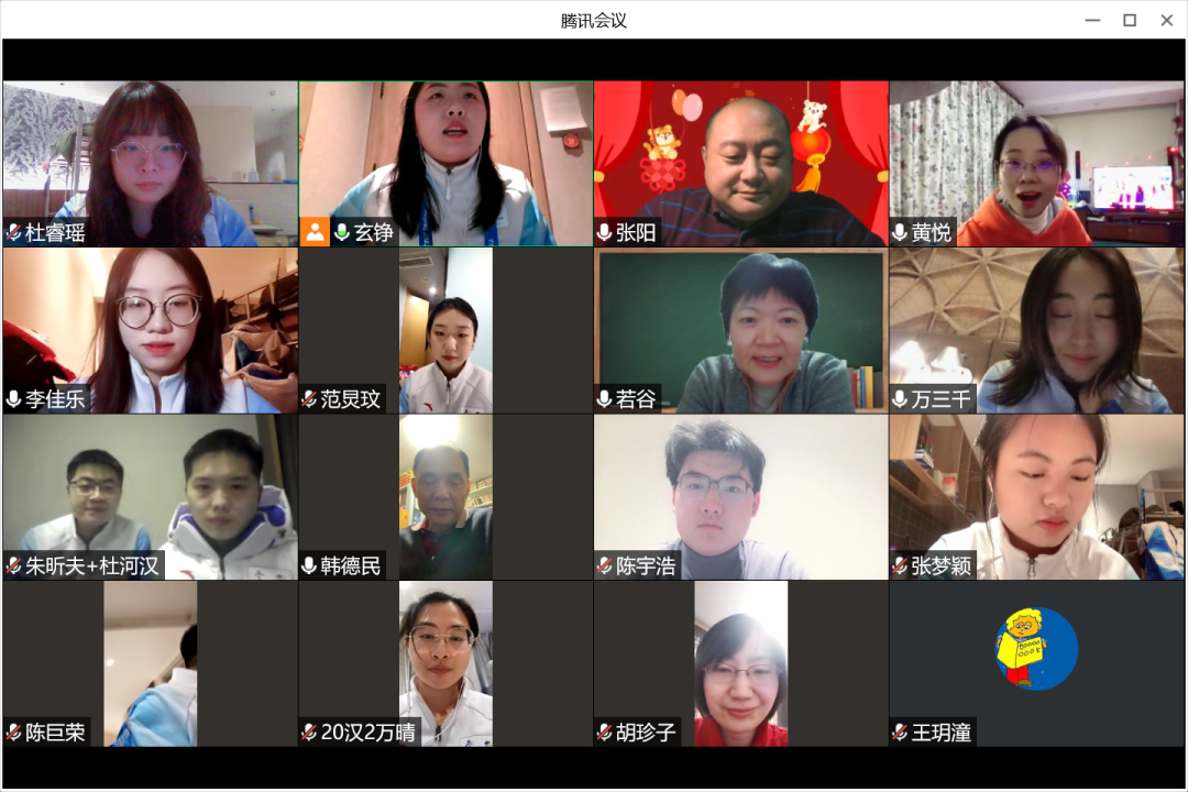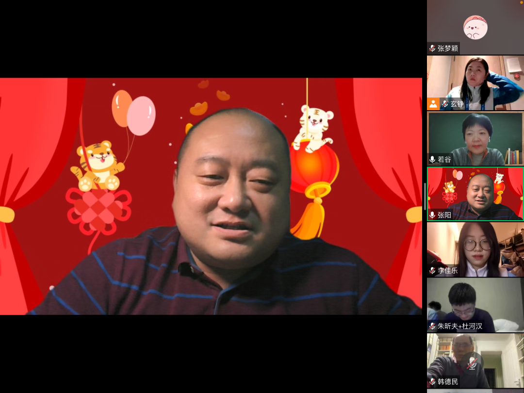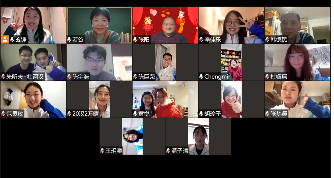 今天正值李佳乐和万晴两位同学的生日,在“云”拜年活动的最后,大家为两位同学送上了生日祝福,本次活动的气氛也被推向了高潮。云上迎新春,冬奥有我们,文学院的志愿者们一定会不负众望,为举办一届“简约、安全、精彩”的冬奥盛会贡献青春力量!