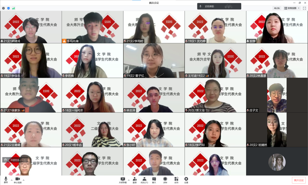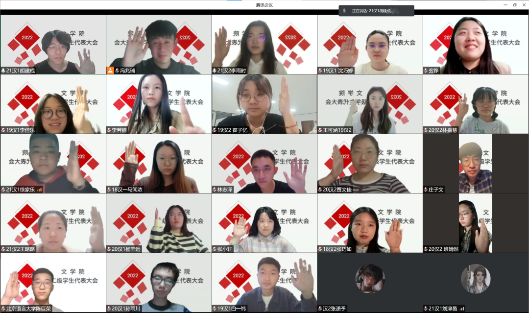 2022年4月10日、12日,北京语言大学文学院本科生学生代表大会和研究生学生代表大会相继于线上顺利召开。文学院22名本科生、20名研究生学生代表参加大会,文学院本科生辅导员玄铮老师、研究生辅导员万阳卓出席本次会议,冯兆瑞、杨玉婷分别主持会议。