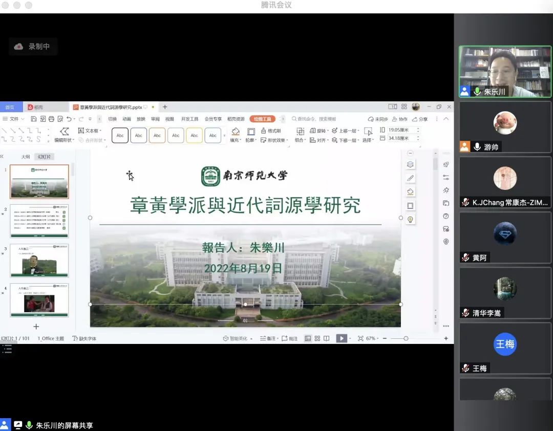 由文学院古代汉语教研室主办的“古代典籍阅读学术沙龙”系列讲座第七讲于8月19日下午在线上成功举办。此次讲座邀请了南京师范大学朱乐川老师为我院学子带来“章黄学派与近代词源学研究”的专题报告,吸引了校内外200余位师生参加。