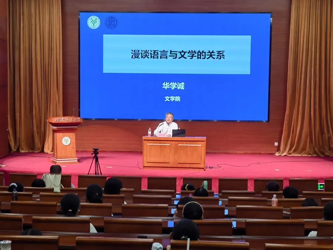 2022年9月14日晚19时,由北京语言大学文学院举办的新生专业认知讲座第一讲在逸夫报告厅顺利举行。华学诚教授为2022级文学院本科新生带来第一讲“漫谈语言与文学的关系”,文学院党委书记张阳主持讲座。