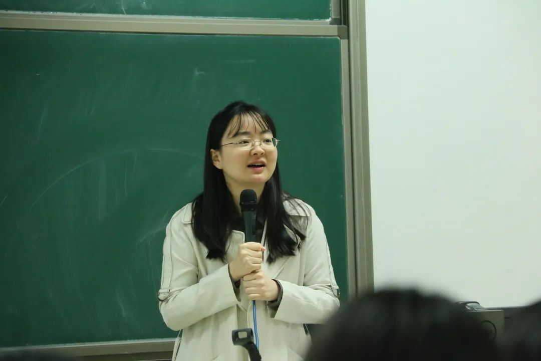 张鹤老师向新生们介绍了古代文学在汉语言专业中的重要地位,她着重强调了阅读在学习中的重要地位。在回答同学提问的过程中,老师说明了阅读推荐书目的重要性,大学生活应当注重学习规划,而其前提是广泛阅读,拓宽视野。