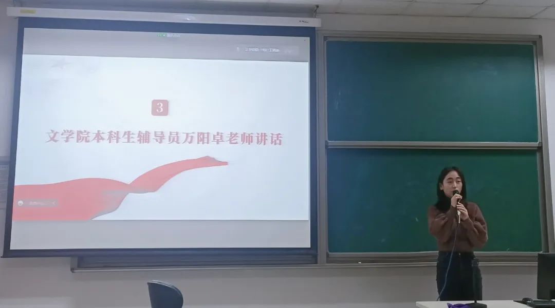 随后,文学院本科生辅导员万阳卓老师讲话。万老师向大家介绍本次帮扶活动的历史沿革,并对参与活动的同学提出建议。通过本次帮扶活动,希望可以让同学克服学习困境,更好适应大学学习生活,形成良好学习氛围,希望帮扶人与被帮扶人相互信任,教学相长,收获友谊。