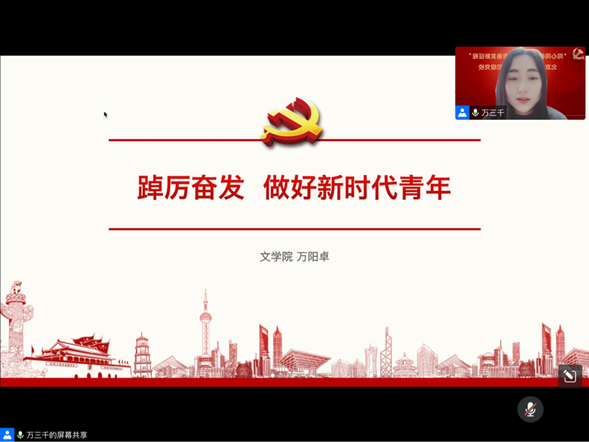 2022年11月24日中午,文学院初级党校第三讲在线上举办。本次讲座由本科生辅导员万阳卓主讲,主题为“踔厉奋发、做好新时代青年”。
