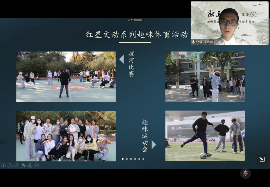 孙雨川同学介绍的精品活动独树一帜:汉字风采,颉书今古,为校内外学生搭建了学术交流和研究的平台;红星文动,五育并举,将党团精神与专业学习同体育活动融合,丰富同学的课余生活;“以书会友,以读攻独”,初次举办即大获成功、反响热烈,培养文学院乐读善思风尚;戏里谈文,剧说人生,青年戏剧节鼓励想象力、激发创造力、创造凝聚力,丰富校园文化内涵;习惯打卡,图书交换,在轻松的活动中培养大家的良好习惯;志愿活动,独具特色,香山红叶节等志愿活动融合专业学习,培养奉献精神;生涯发展,保驾护航,开展保研经验交流会等活动,为同学们解决发展中的实际困难。