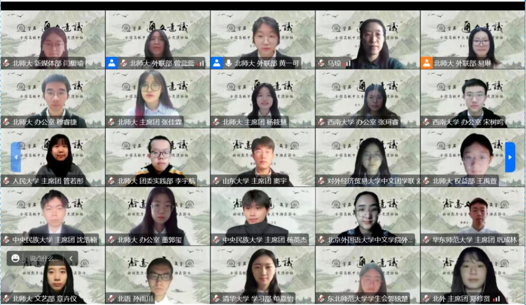 2022年11月19日上午,由北京师范大学文学院主办的首届“通文达议”全国高校中文专业学生会交流论坛在腾讯会议线上会议室顺利开幕。北语文学院受邀参与本次论坛。本次论坛旨在推进与会学生会组织实现资源共享、优势互补、协同并进,努力构建稳定可持续的全国性中文专业学生会交流体系。北京师范大学、清华大学、北京大学、北京外国语大学、北京语言大学、东北师范大学、华东师范大学、四川大学、山东大学、首都师范大学、陕西师范大学、武汉大学、西南大学、中国传媒大学、中国人民大学、浙江大学、中央民族大学等二十所知名高校中文专业学生会代表出席本次论坛。会议气氛融洽,讨论热烈,成果颇丰。