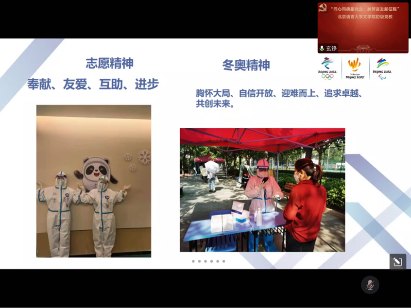 文学院初级党校第四讲于11月28日线上开展,本次讲座主题为“冬奥思政课”,邀请了五位参与2022年北京冬奥会的文学院师生志愿者,分享冬奥会期间的志愿服务经历。