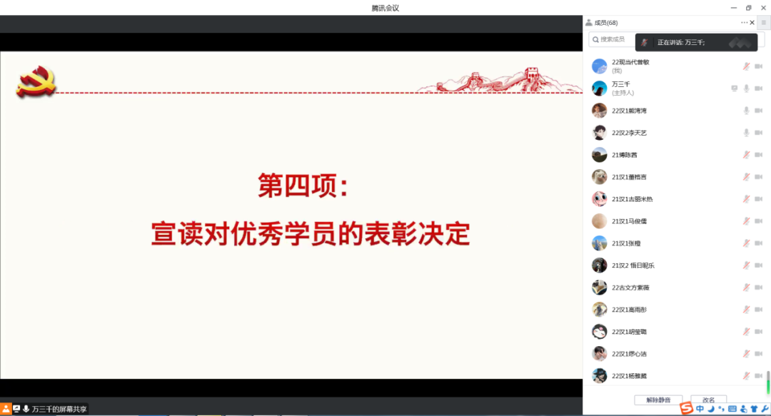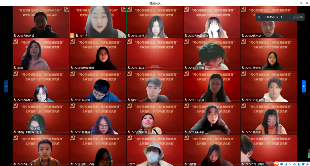 12月9日,文学院“同心同德跟党走 踔厉奋发新征程”首期初级党校结业典礼举行,学院党委书记张阳出席结业式,70名学员通过腾讯会议参加。