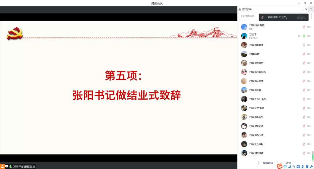 张阳书记对本次党校进行了总结,他结合二十大精神,对党校学员提出了三点希望:一是坚持理论学习,筑牢思想根基;二是结合专业学习,主动担当作为;三是锤炼过硬本领,增强自身才干。张阳书记认为,疫情之下,青年人更应该保持理性思维,感悟二十大精神,做新时代的北语人和中文人。