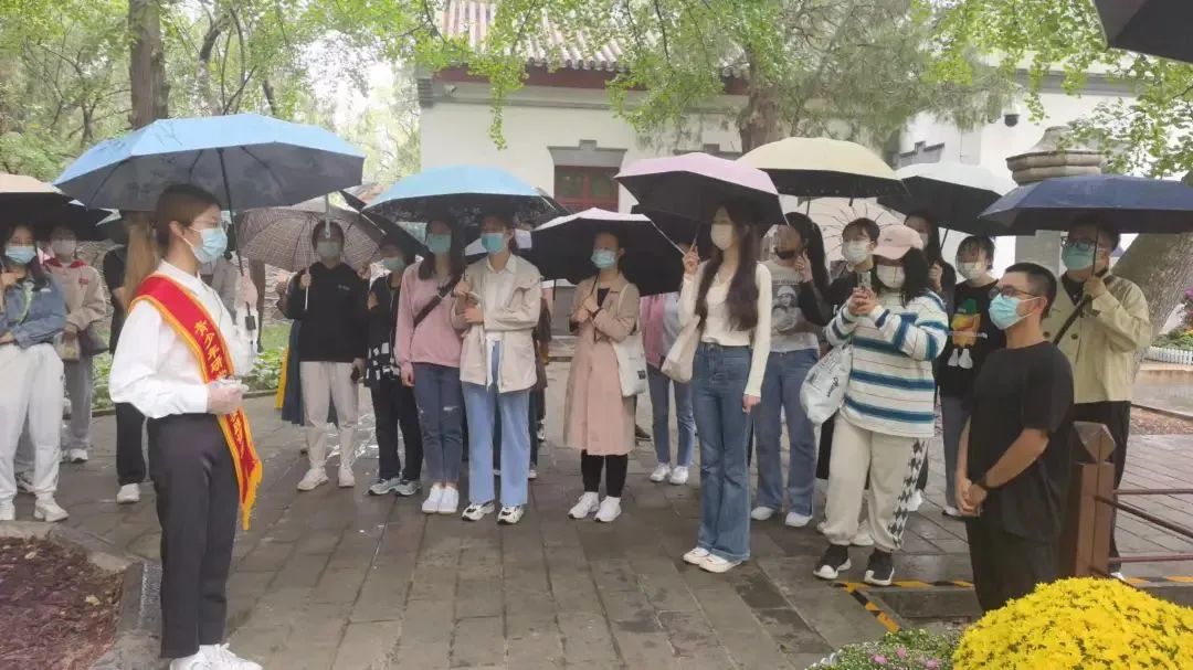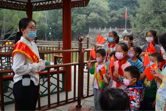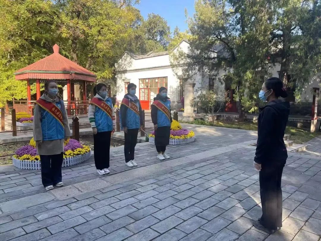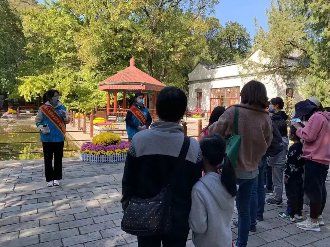 “各位游客,大家好!我是北京语言大学志愿者,欢迎大家来到双清别墅,今天我为大家讲述红色故事《进京赶考》……”。在讲中学,在学中讲,党支部成员深度体验讲解员工作,在香山公园双清别墅为前来游览的游客讲述发生在红色故事,在国庆节期间及香山红叶节每周末,总计派出52人次志愿者。志愿者们在上岗前,文学院本科第一党支部和香山公园文化队党支部一同为同学们进行了系统性讲解培训与内容考察,使得同学们以最饱满的精神状态与热情迎接前往香山公园的群众,其中有班级组织前来游学的中小学生,也有自行前往参观游览的游客,每日接待客流量达6万余人次。志愿者们在讲述香山红色故事的同时,学习香山红色文化,在自学理解的基础上讲述给他人,加深理解,真正做到可以讲好中国共产党的故事,也体现了以史育人的作用,开展了一堂理论与实践相结合的党史思政课与宣传教育活动。在未来,红色故事讲解活动将持续开展,逐步成为共建中的育人品牌。