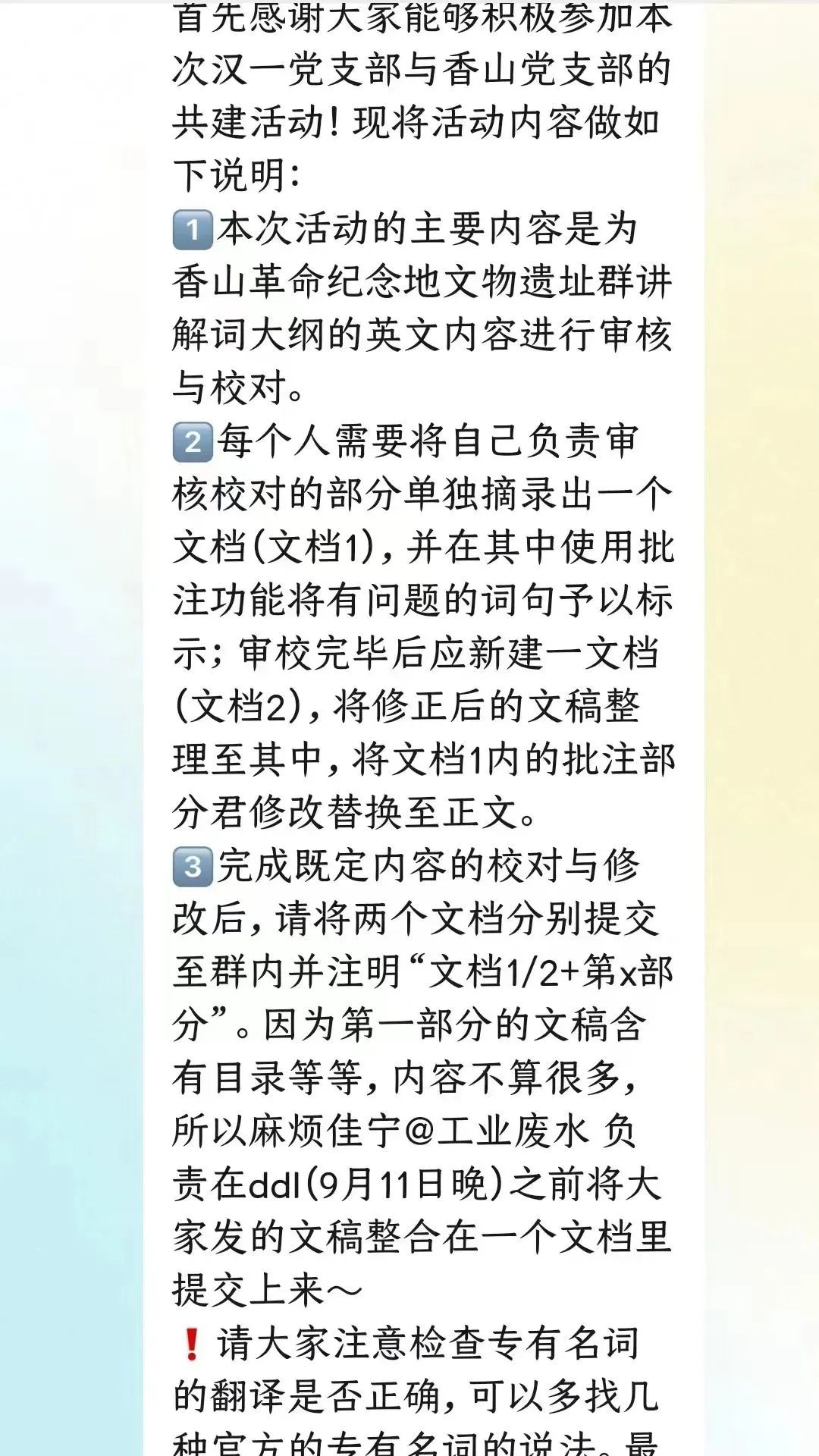 以语言为桥,文学院本科第一党支部自2022年6月开始到9月初,分两批次为香山革命纪念地讲解词进行翻译校对工作,本次翻译活动分为两个批次进行,招募党支部积极分子、预备党员担任校对志愿者,通过考核的志愿者们按讲解词的段落分组,在线上进行翻译校对工作,每组再选定一名最终校对人员进行最终审核,以确保翻译内容准确无误,共计完成两万五千余字的翻译校对,翻译内容涵盖从双清别墅到来青轩再到丽瞩楼等革命旧址,在翻译的过程中,同学们系统地了解了香山革命纪念地的历史沿革,对于进京赶考之路有了更加深刻地理解,在学中译,在译中学。