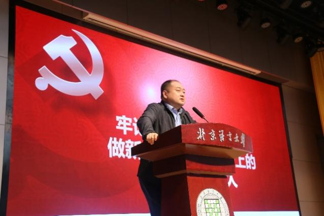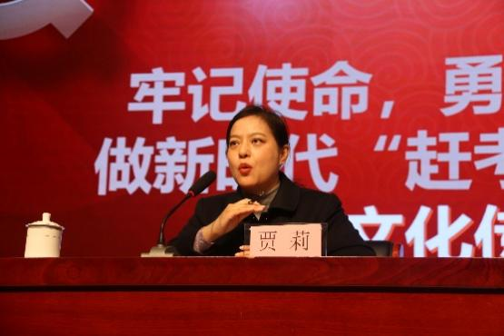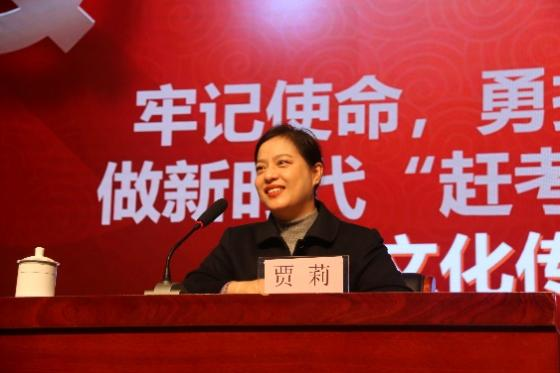 为深入学习贯彻党的二十大精神,了解新时代动向,引导党员们把思想和行动统一到党的二十大精神上来,2023年3月10日下午,北京语言大学文学院“初心讲堂”第一讲开讲,党的二十大代表、香山公园金牌讲解员贾莉同志做了以“牢记使命,勇担重担,做新时代‘赶考’路上的红色文化传承人”为主题的报告,文学院全体党员和党校学员参加报告会。报告由党委书记张阳主持。