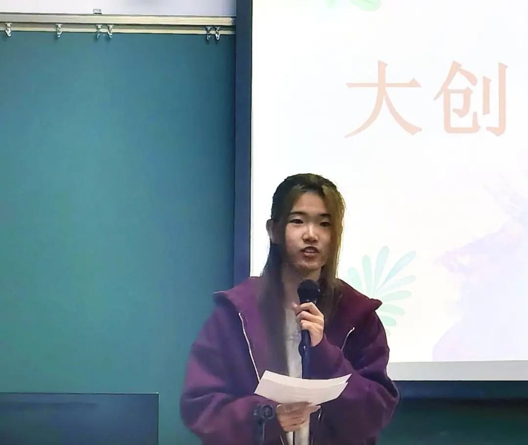 2019级汉语言文学2班潘子晴着重分享了选题经验,建议同学们结合感兴趣的方向、热点领域及问题、参考已立项项目以及学校优势和学科特点进行选题。她强调要提前做好项目准备工作,主动联系导师,在工作时注重分工合作。