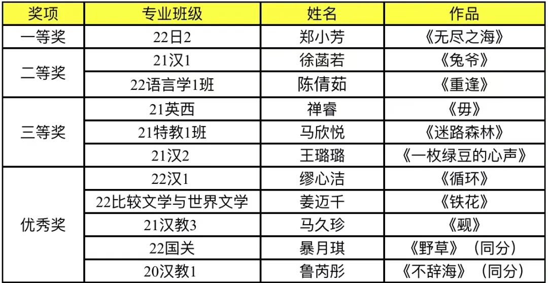 近日,第一届创意写作大赛经专家评审最终评选出11份获奖作品。此次文学院第一届创意写作大赛,历时三个月,自1月19日正式开始后,吸引了来自不同院系、年级同学的积极投稿。