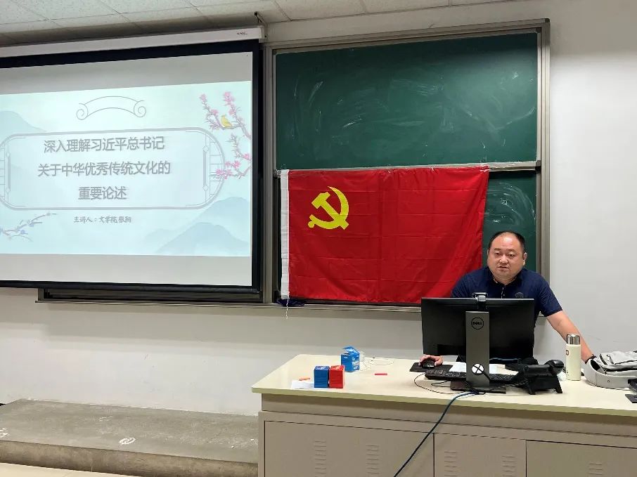 按照学校党委关于学习贯彻习近平新时代中国特色社会主义思想主题教育的部署安排,2023年5月25日晚,文学院党委书记张阳以“深入理解习近平总书记关于中华传统文化的重要论述”为主题,带头讲授主题教育专题党课。